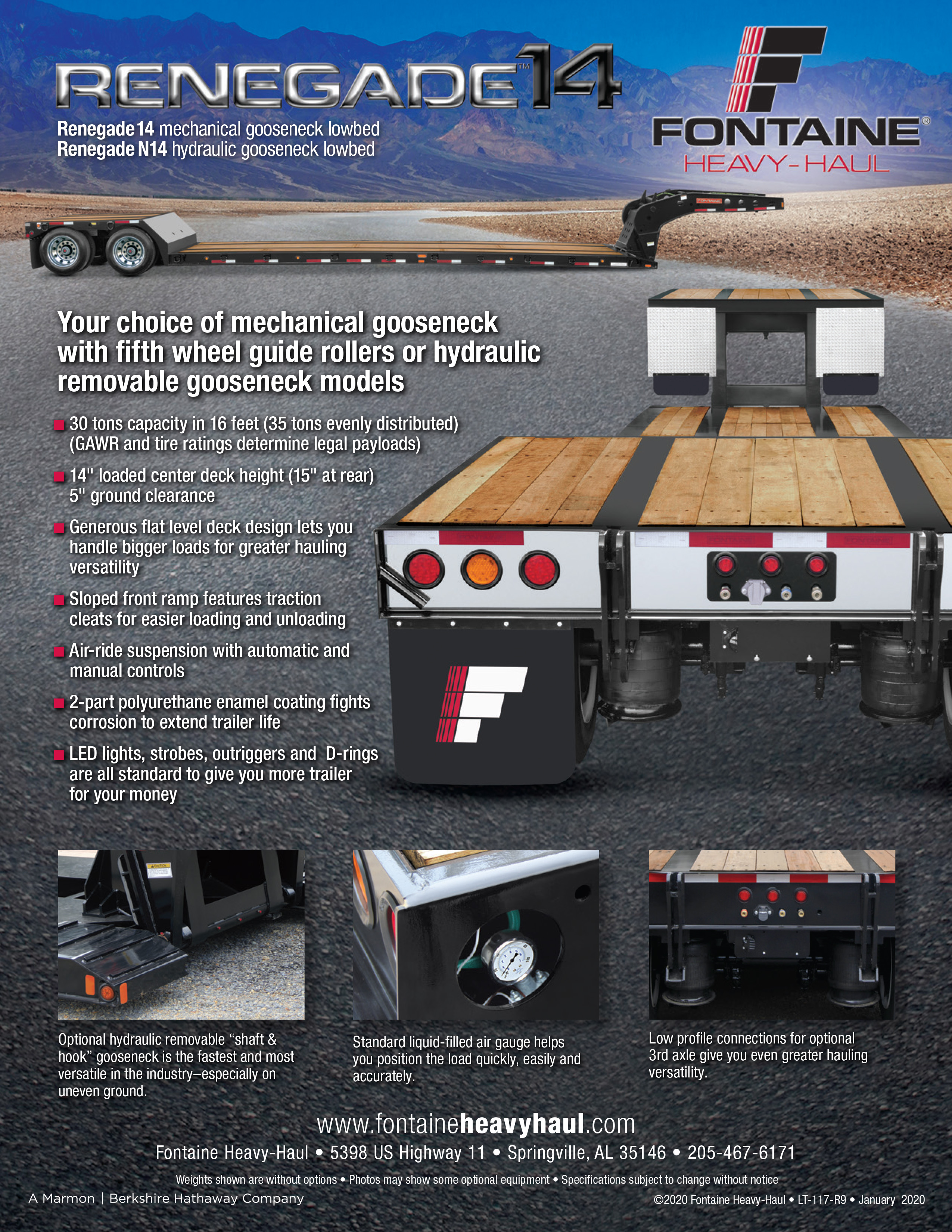 Loaded deck height/clearance: 15 inches with 6 inches ground clearance at front and rear of deck - 14 inches with 5 inches ground clearance at center when fully loaded